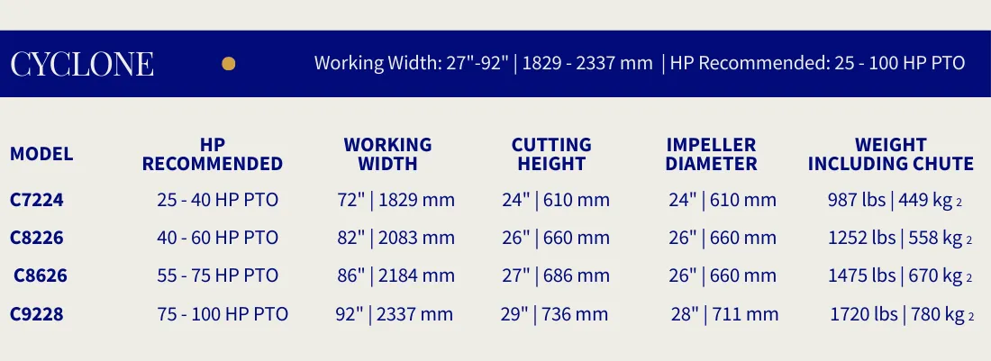 The Cyclone series combines innovative snow handling with proven Pronovost components to deliver efficient, high-performance snow removal. Designed for residential and light commercial applications, these snowblowers provide clean clearing, strong throwing distance, and reliable durability.