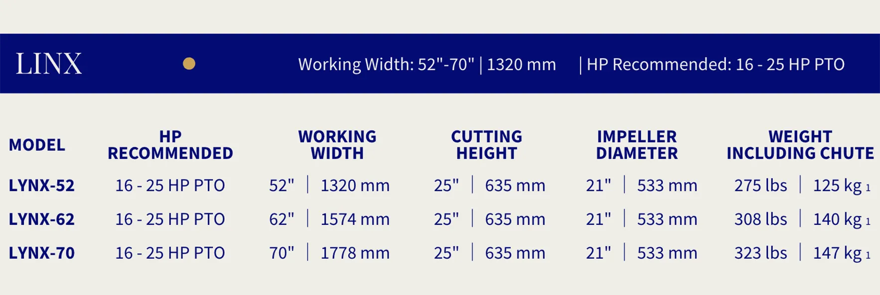 The Lynx series of compact snowblowers is designed for homeowners and light-duty property maintenance. Built for reliability and efficient snow removal, these units pair well with smaller tractors and residential applications where maneuverability and dependable performance matter most.