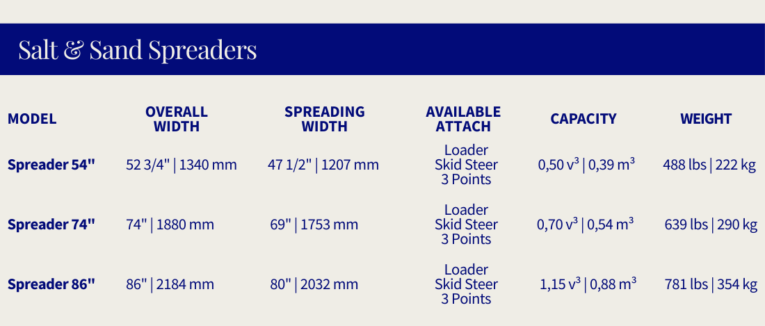 Pronovost sand and salt spreaders allow operators to load and distribute material with one versatile piece of equipment. Compatible with loaders or tractor three-point hitches, these spreaders provide efficient winter traction control for commercial and municipal applications.